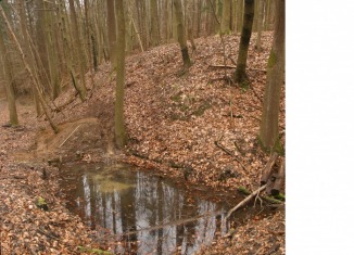 Foto oben links: Zustand Juni 2009 Foto oben rechts: Der Tümpel der Feuersalamander im Februar 2007.